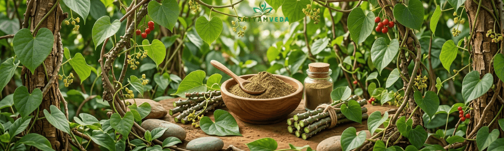 Giloy is a climbing shrub distributed through the length and breadth of India, telling by its heart-shaped leaves and medicine-rich stem. Traditionally, the stem is said to be the most potent part in terms of bioactive compounds packed within that healing plant.